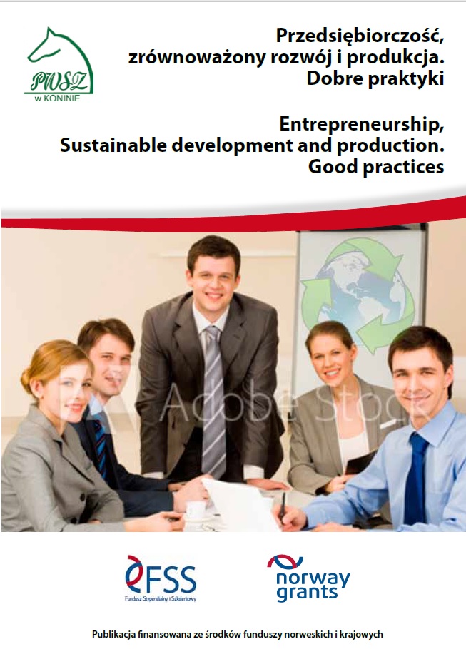 - Entrepreneurship, sustainable development and manufacturing for students of PWSZ in Konin, implemented in the State School of Applied Sciences in Konin within the framework of Scholarship and Training Fund (activity: Development of Polish Higher Education Institutions). Its publishing has
